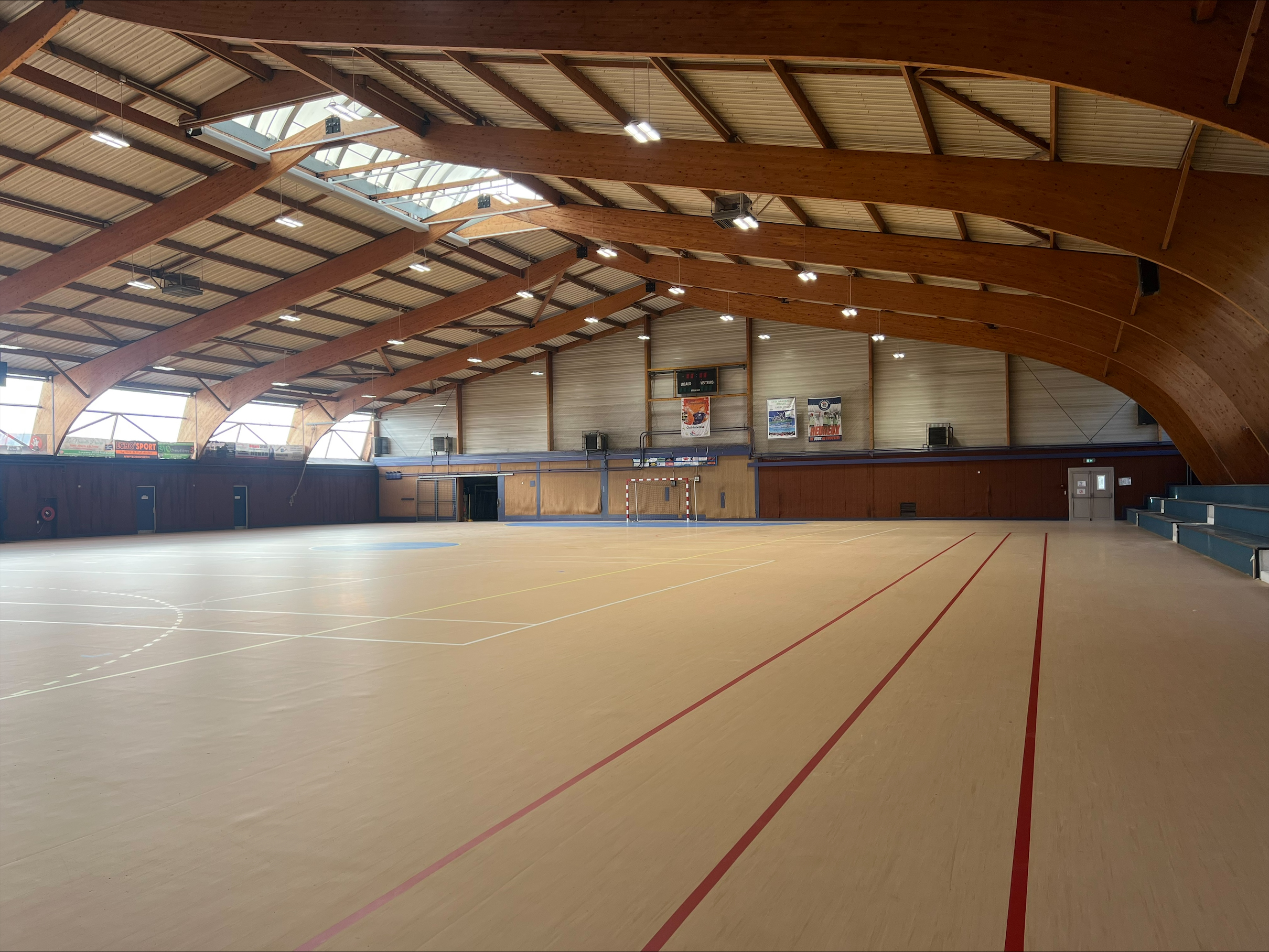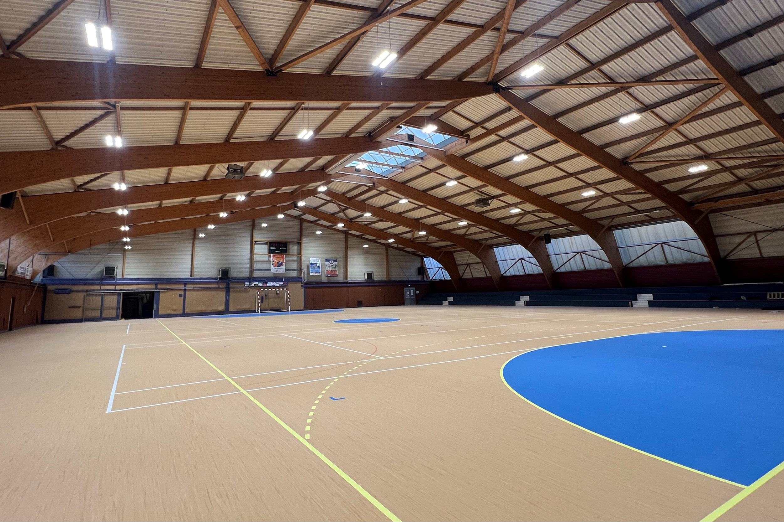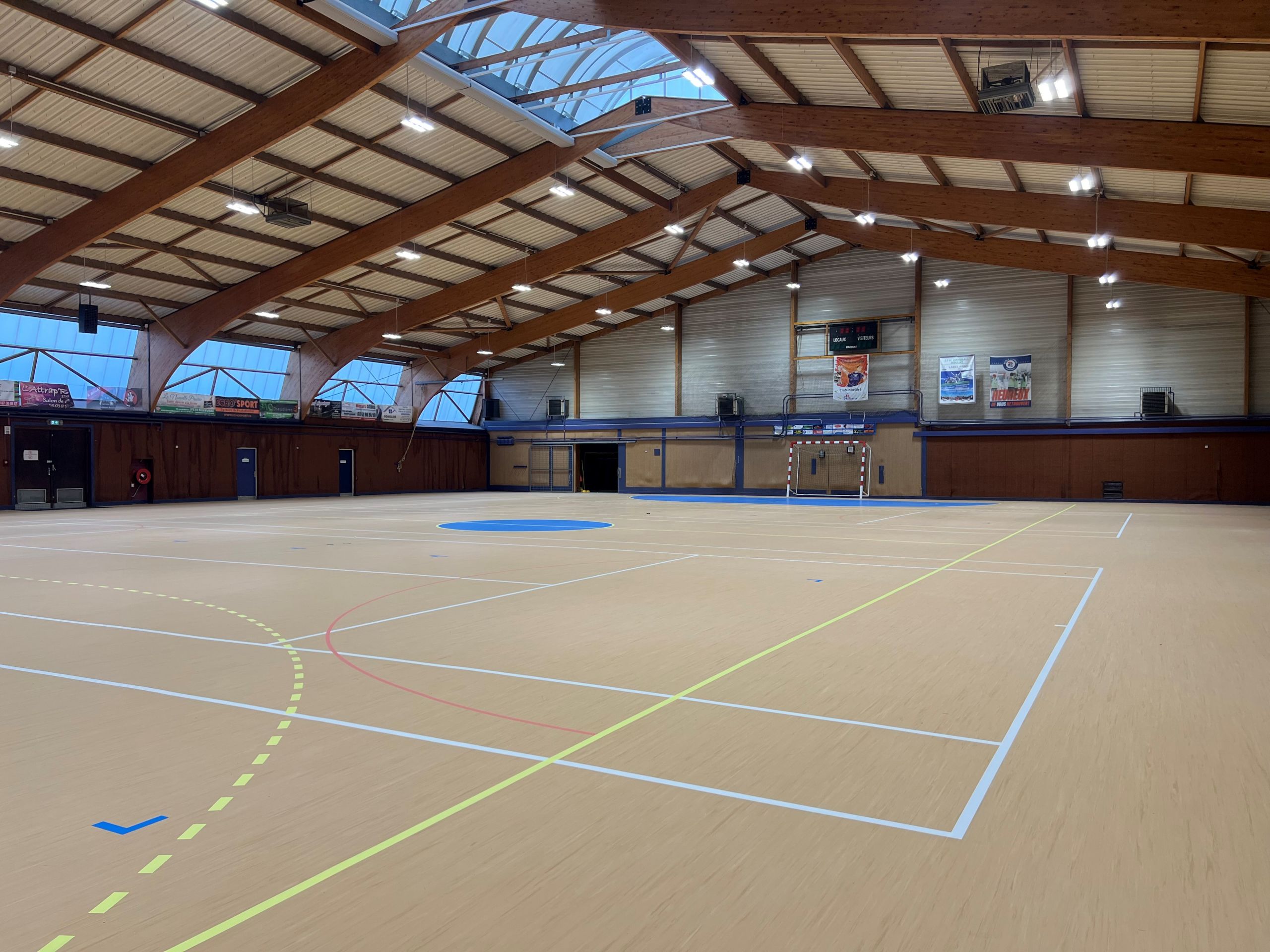 Le gymnase a été partiellement rénové avec un tout nouveau revêtement en caoutchouc, durable et résistant. Après un nivelage complet, plusieurs disciplines sportives pourront bénéficier des tracés spécialement dédiés :